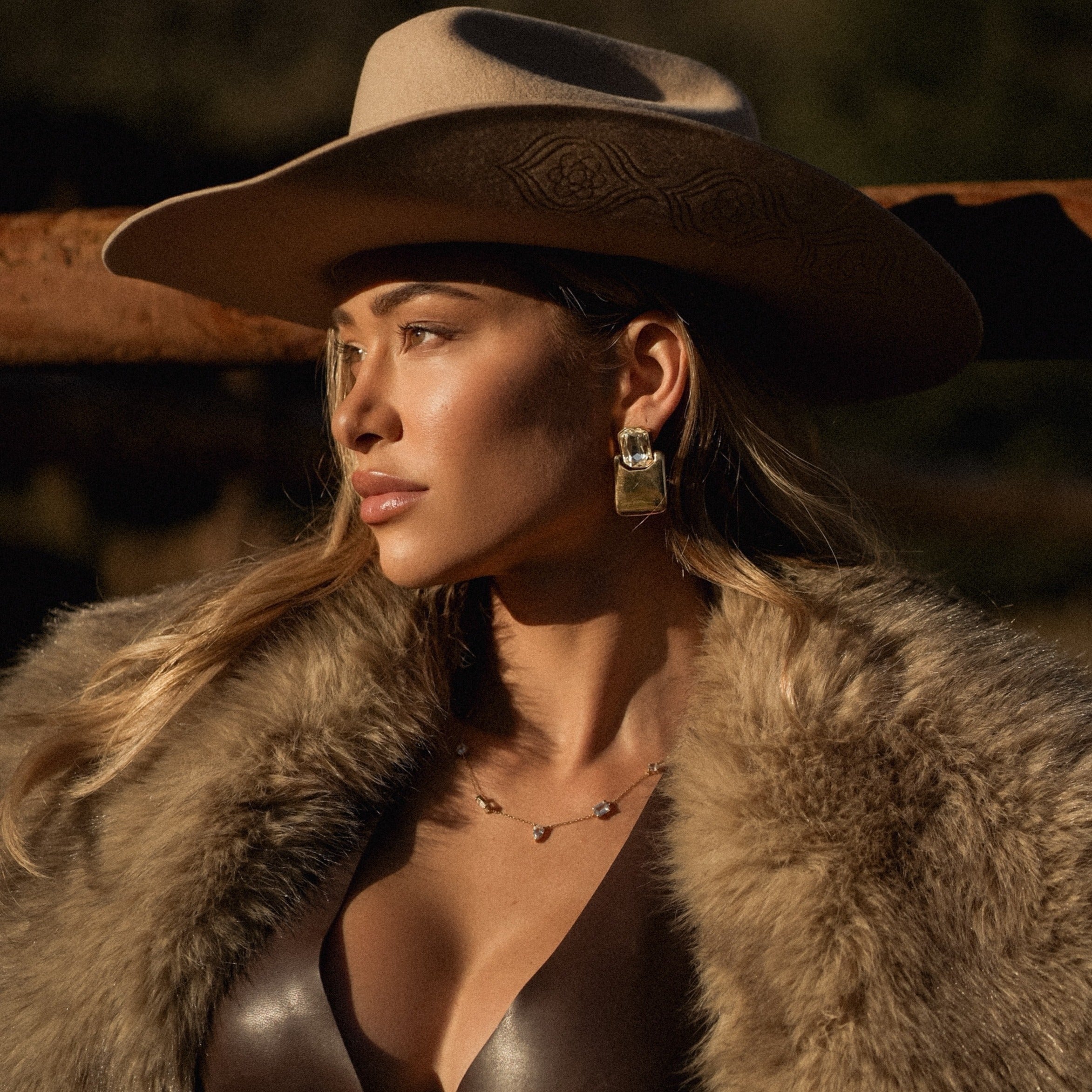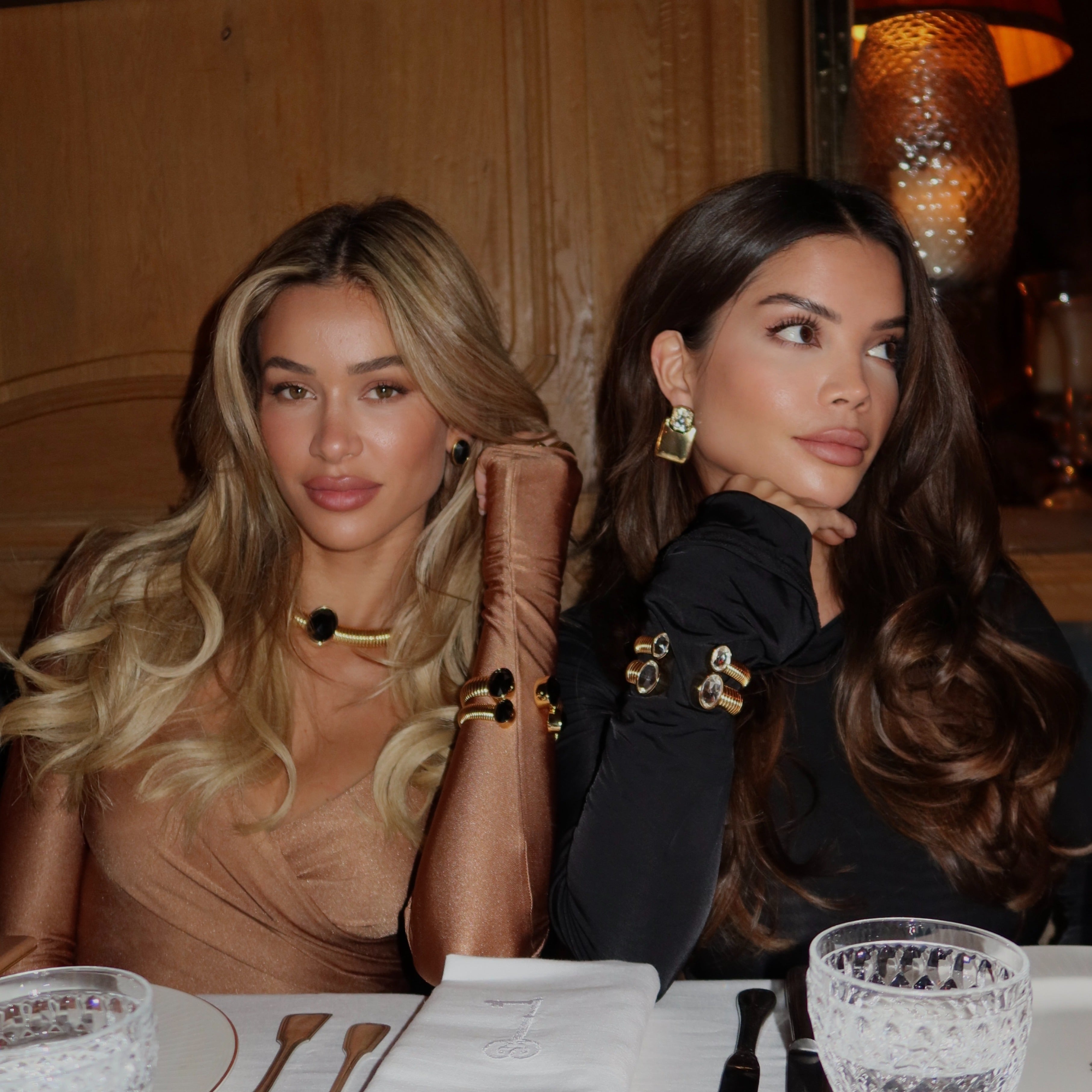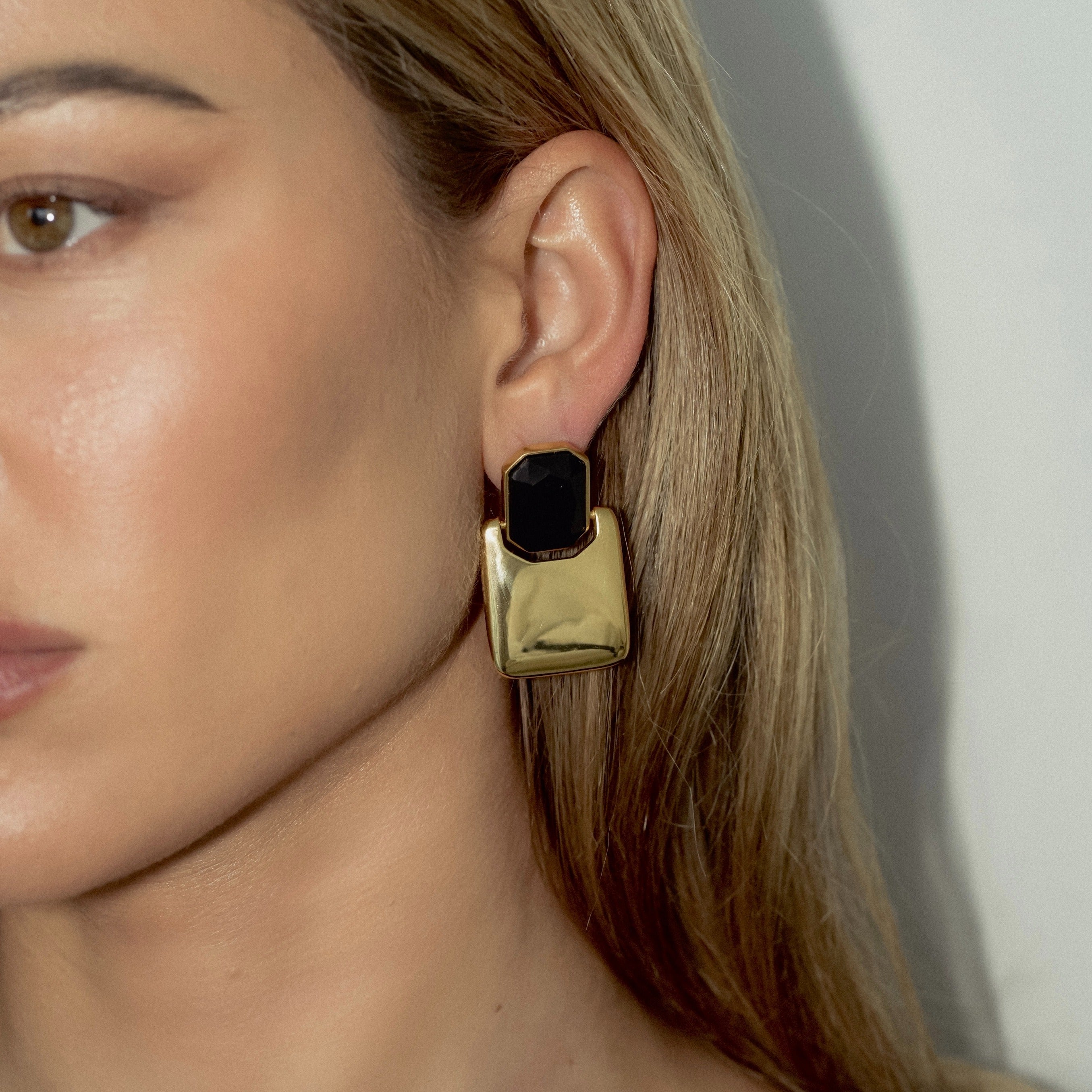 A polished rectangle stone resting on a sculpted base. The statement piece of the night.