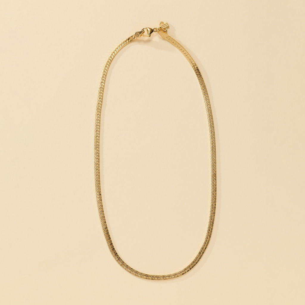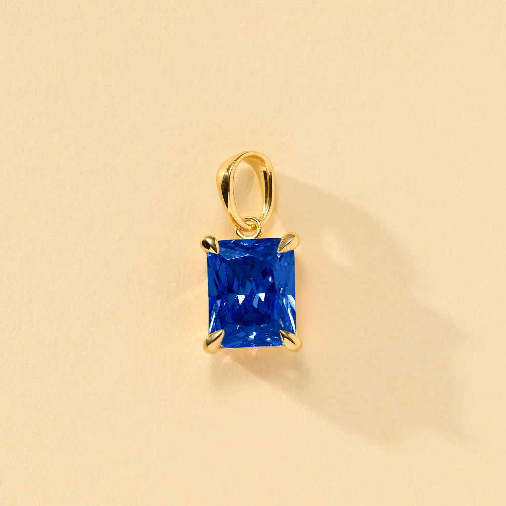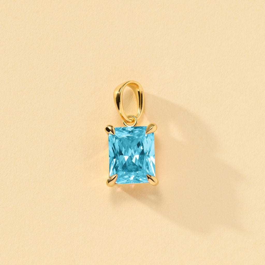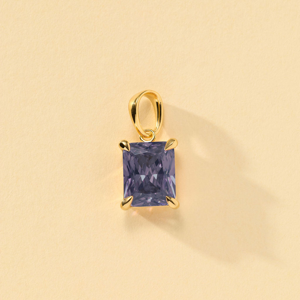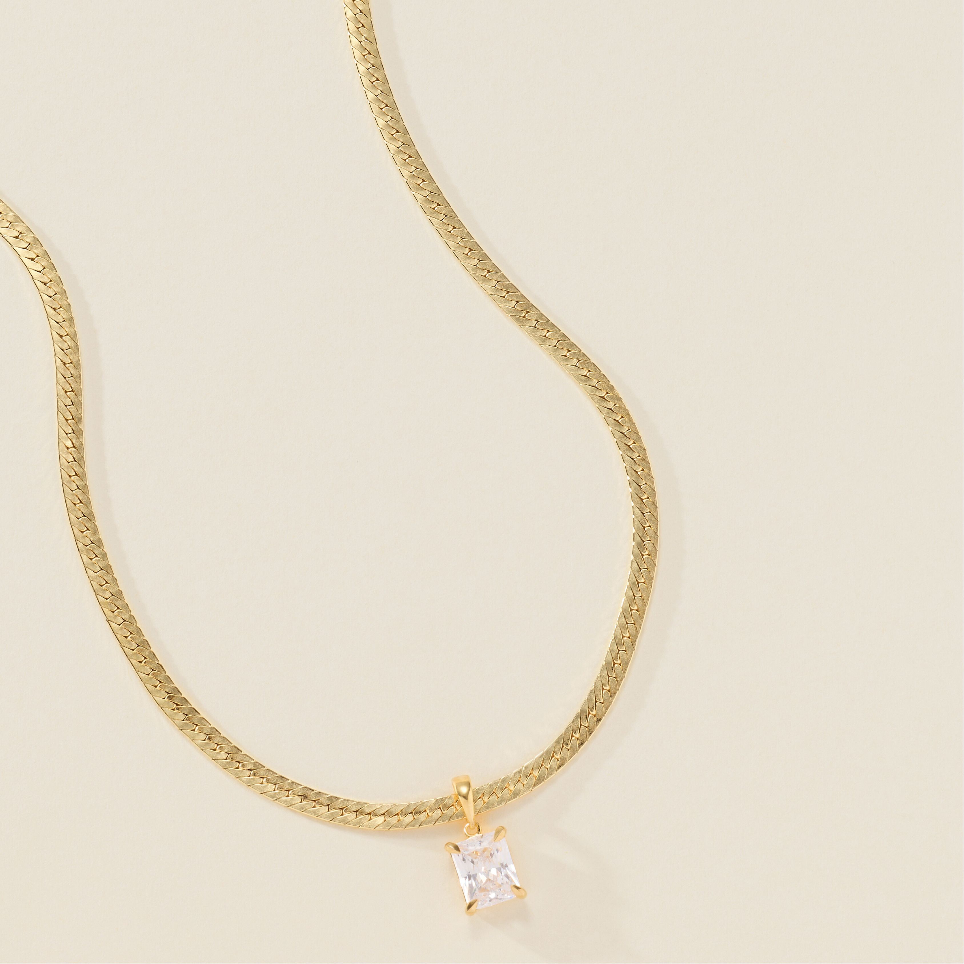 A single emerald cut stone suspended from a beautiful herringbone chain. Available in different birthstone colors to give a meaningful gift to someone special or yourself.