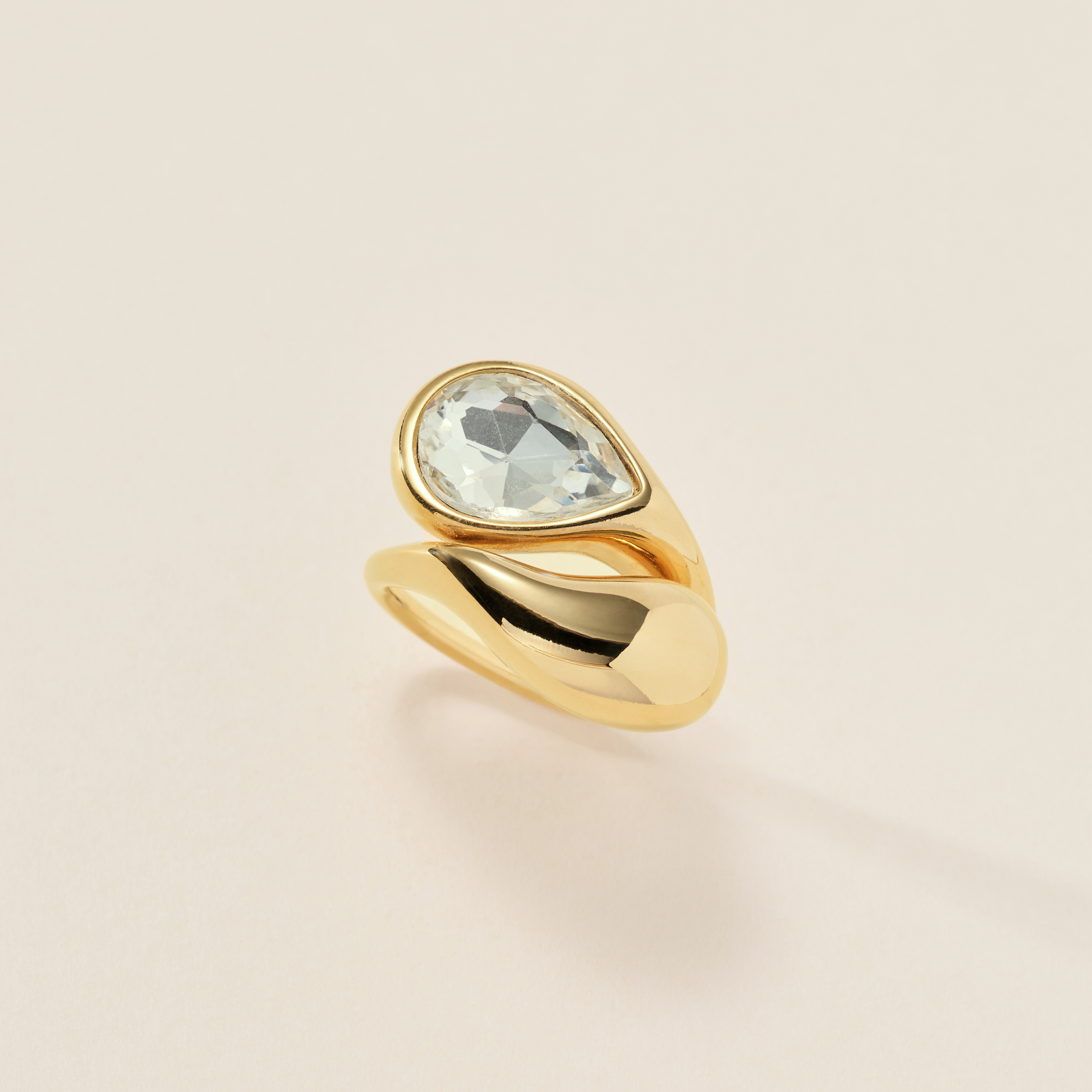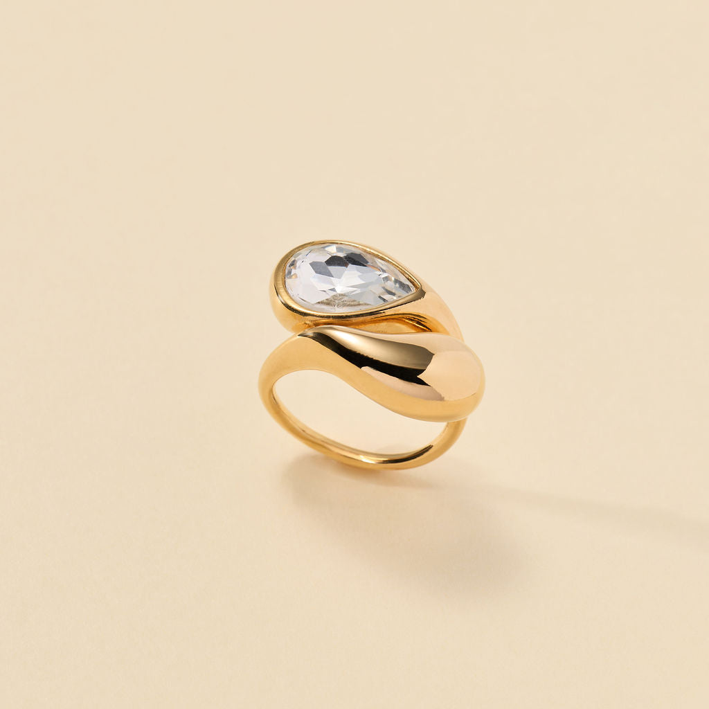 A sculpted teardrop wraps around a pear-cut stone, blending softness with edge. It's fluid, modern, and bold - the kind of ring that always gets a second look.