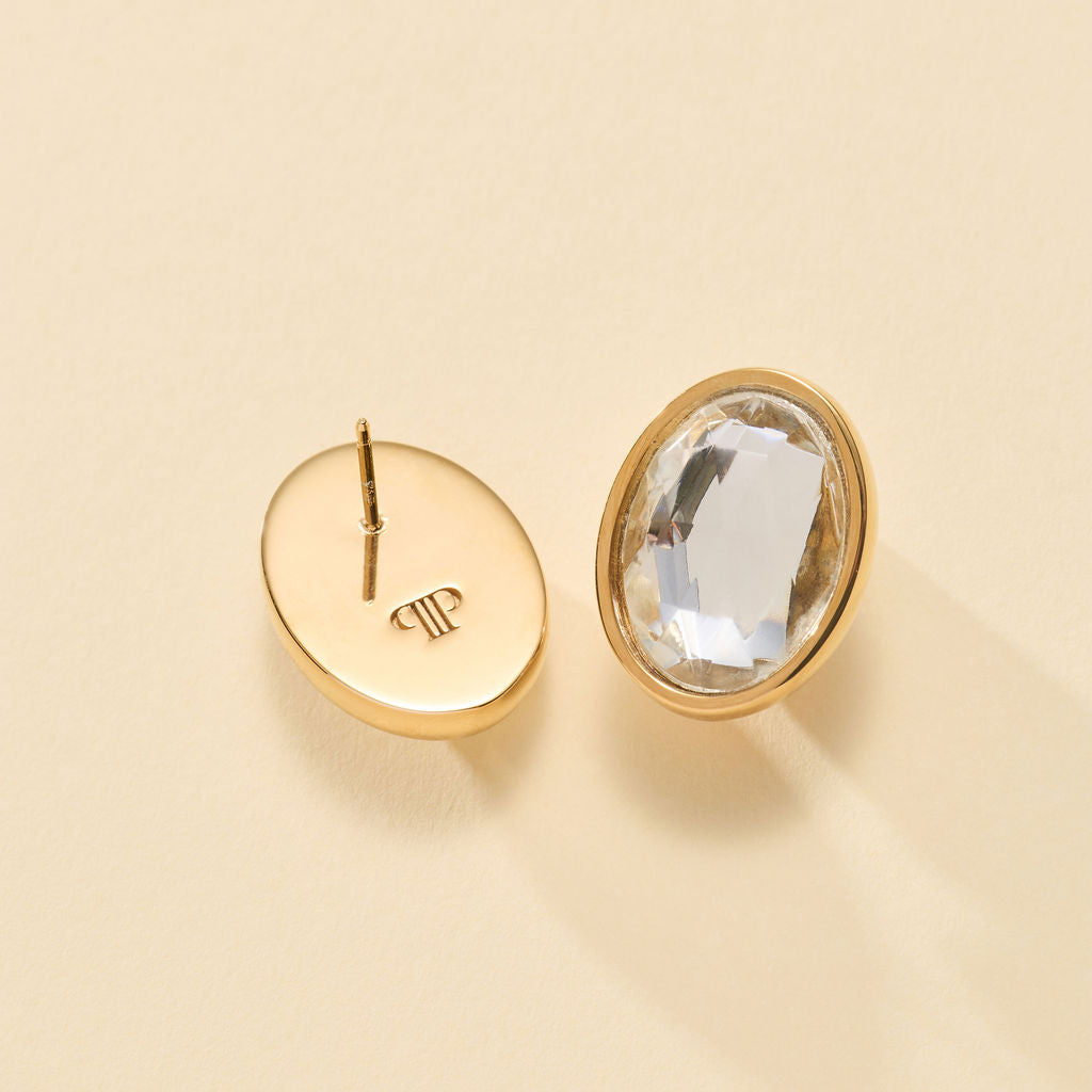 Our Opalite Earrings feature a bold faceted stone wrapped in a smooth, polished frame. An elegant and striking stone that will elevate any outfit.